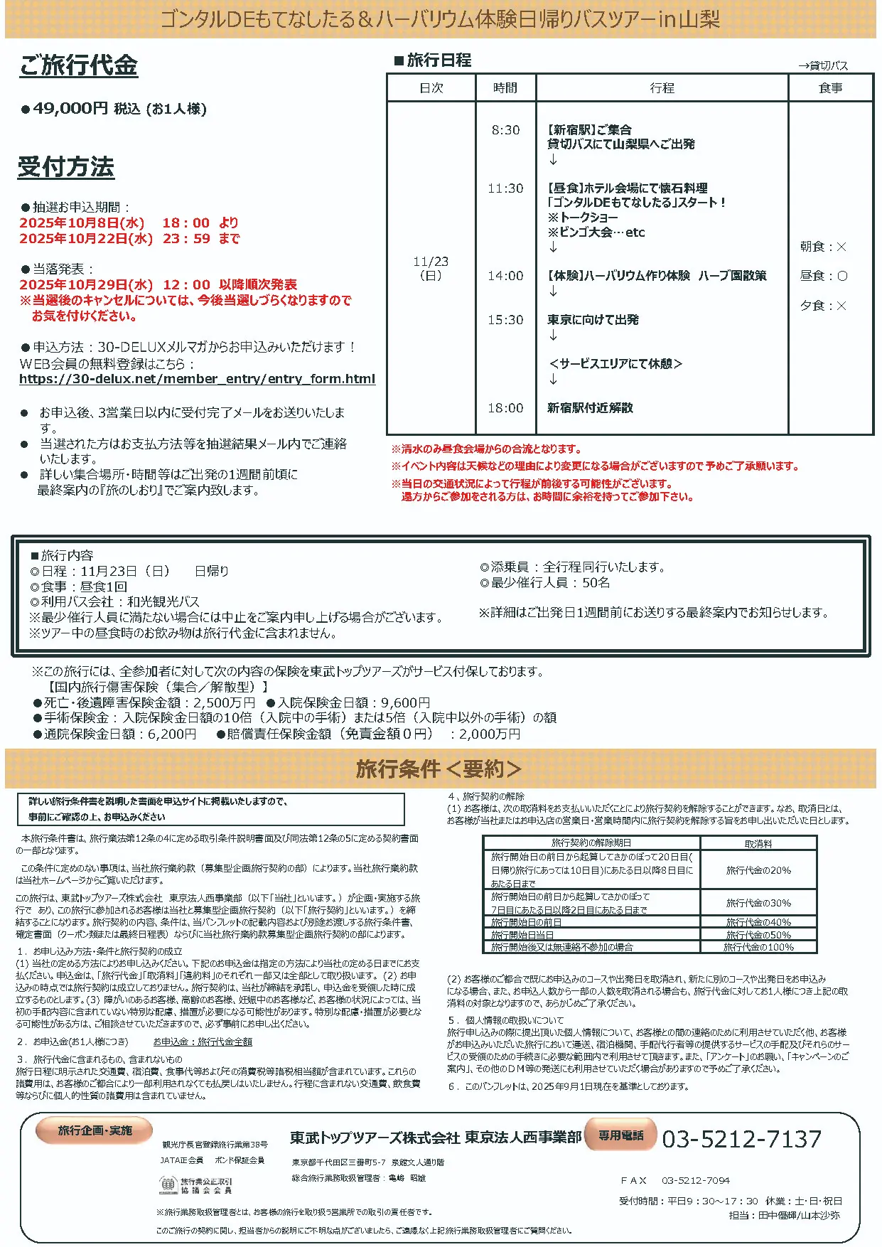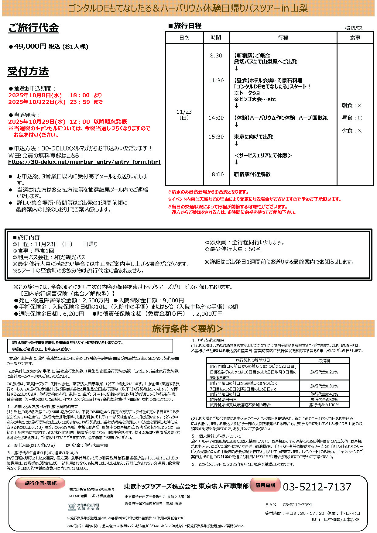 30-DELUX presents ゴンタルDEもてなしたる&ハーバリウム体験 日帰りバスツアー in山梨